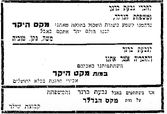 מהעיתונות דבר, 24 ינואר 1937 דבר, 30 נובמבר 1937 דבר 12 דצמבר 1944 הצפה, 2 אפריל 1945 על המשמר, 2 אפריל 1945 מעריב 26 נובמבר 1978